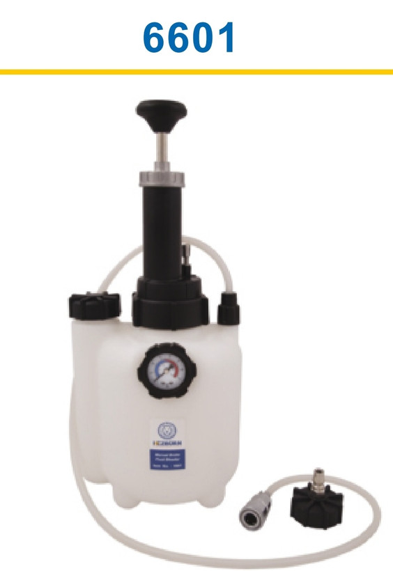 مخزن تخلیه و تزریق روغن ترمز و کلاچ هزبرن مدل ۶۶۰۱ دارای گِیج اندازهگیری دقیق با بدنه پلاستیک فشرده و مقاوم برای هواگیری سیستم ترمز و تعویض آسان روغن ترمز بدون ایجاد آلودگی در محیط کار میباشد .